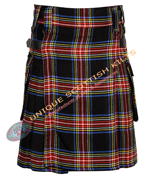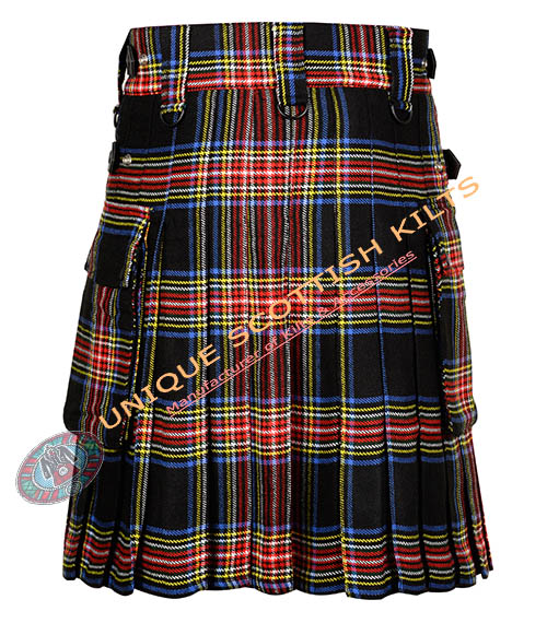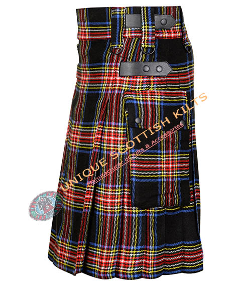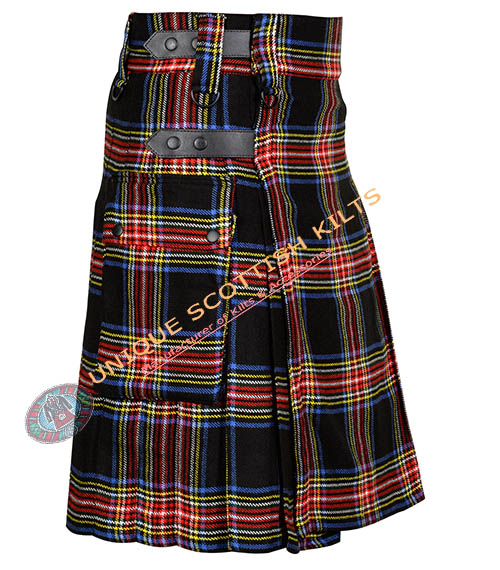 Be the first to review “Black Stewart Tartan Utility Kilt With Adjustable Leather Straps”