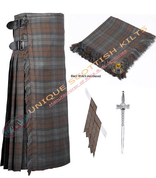 The Black Watch Weathered Tartan Kilt is a stunning representation of Scottish tradition and style. This kilt features the iconic Black Watch Weathered Tartan, characterized by its bold colors and intricate patterns that pay homage to the Black Watch Weathered clan. Crafted from high-quality acrylic wool, it offers both comfort and durability, making it suitable for various occasions.