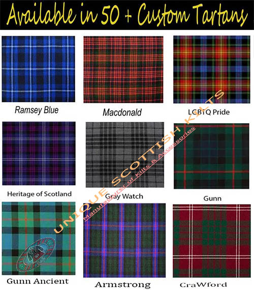 Ross Hunting Modern, Black Watch Weathered, Black Stewart, Anderson, Black Watch, Spirit of Scotland, Blue Douglas, Hunting Stewart, Royal Stewart, Mackenzie Weathered, Gordon, Wallace, Tara Murphy, Masonic, Fraser Weathered, Mackenzie, U,S Navy, Ramsey Blue Hunting, Ramsey Blue, Macdonald, LGBTQ Pride, Heritage of Scotland, Grey Watch, Gunn, Gunn Ancient, Armstrong, Crawford, Scottish Rose, Macleod of Lewis, Camel Thompson, Macgregor, Macleod of Harris, Buchanan, Irish, Dress Gordon, Campbell Ancient