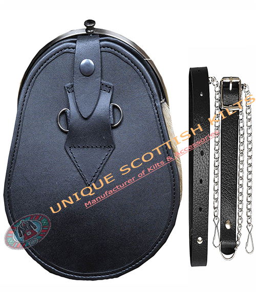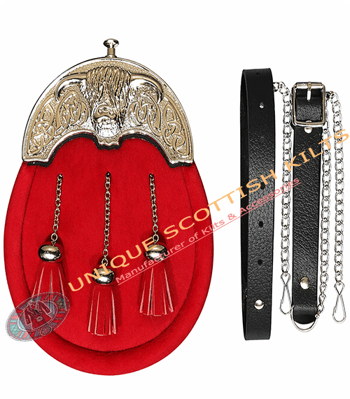 Highland Cow Silver Cantle Full Dress Sporran With Red Bovine Include Chain Strap