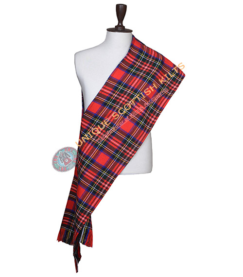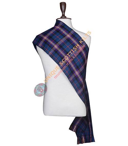 unisex sashes are made of the same woven Acrylic as our kilts. They are made to be pinned together with a brooch or pin. Measurement include fringe.