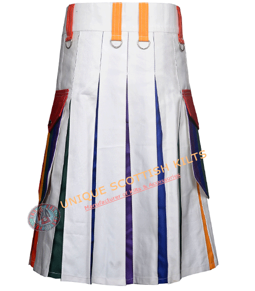 - The LGBT Pride Utility Kilt Hybrid Rainbow Kilts comes with plenty of strategically positioned pockets.