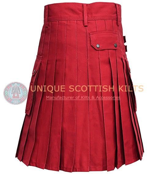 Scottish  Utility KILT Deluxe Red Cotton Working KILTS 100% Cotton Premium Cargo Pockets